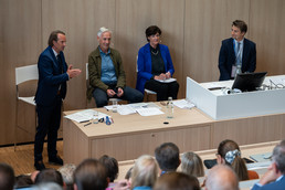 Die Wortmeldungen der anschließenden Podiumsdiskussion unter Beteiligung eines Baumeisters, eines Soziologen, einer Raumplanerin und eines Universitätsprofessors für Zivilrecht drehten sich um die staatlichen Regulierungen, Bürokratie, hohe Baukosten, die Unleistbarkeit von Eigentum, den damit steigenden Druck auf den Mietmarkt und die Auswirkungen auf die Kriminal- und Scheidungsstatistik durch Reduktion der Wohnfläche pro Person.
