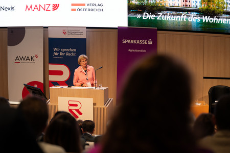 Zum Thema des Anwaltstags 2025 „Zukunft des Wohnens“ führte die Präsidentin der Tiroler Rechtsanwaltskammer Dr.in Birgit Streif mit einleitenden Worten zur angespannten Situation in Innsbruck ein.