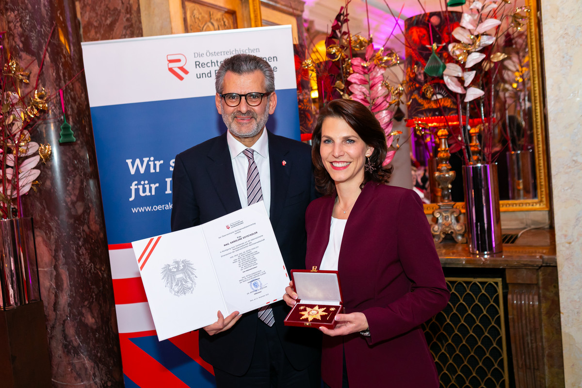 „Mit dieser Auszeichnung würdigen wir zwei Persönlichkeiten, die sich in besonderer Weise um die österreichische Rechtsanwaltschaft und den Rechtsstaat verdient gemacht haben“, betonte Utudjian in seiner Laudatio.